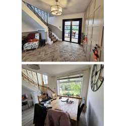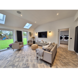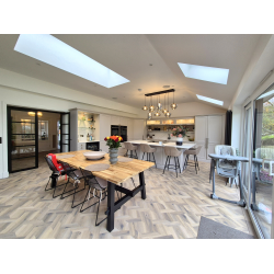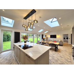 This large rear extension opens up and extends the rear of the existing property, with a light-filled open plan sociable dining kitchen space. The vaulted ceiling, veluxes and lantern skylight all let in lots of natural light. The added Utility and Shower room are also a game-changer.